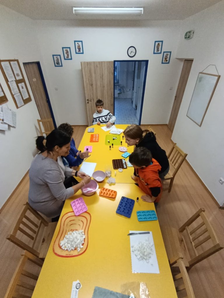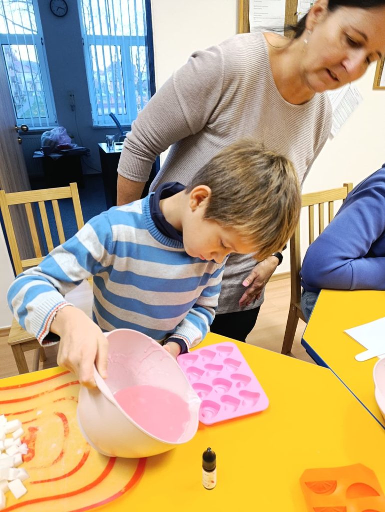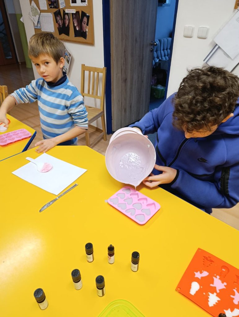 V rámci tvoření si vyzkoušely výrobu mýdel, ze kterých udělaly dárečky pro rodiče.