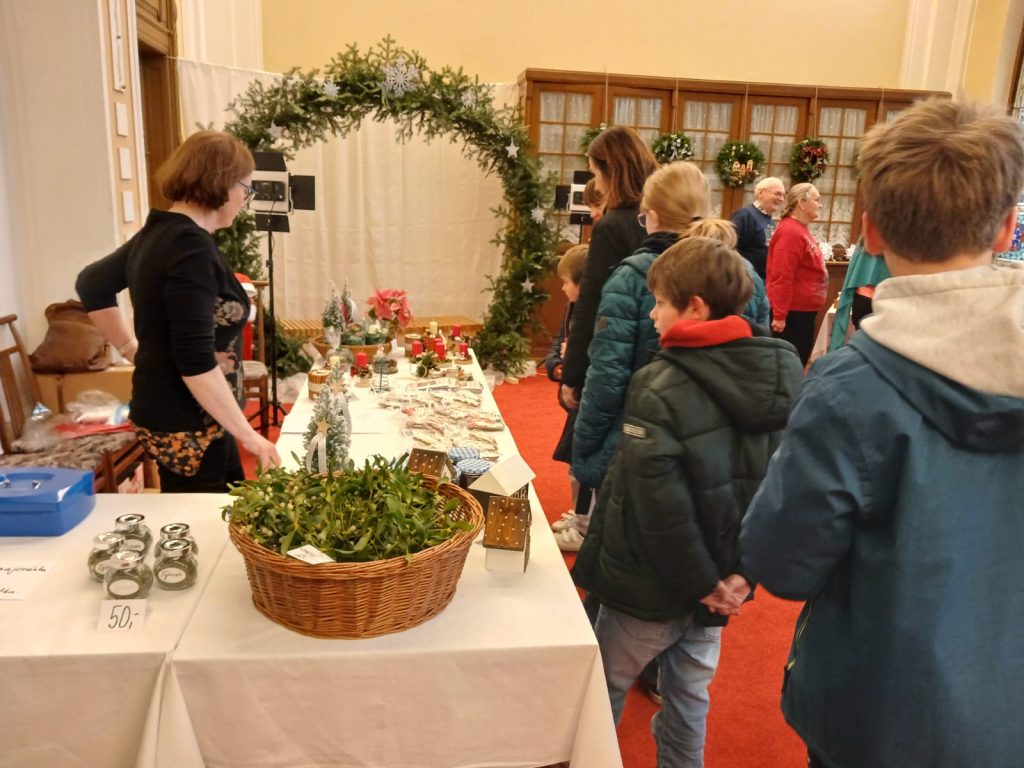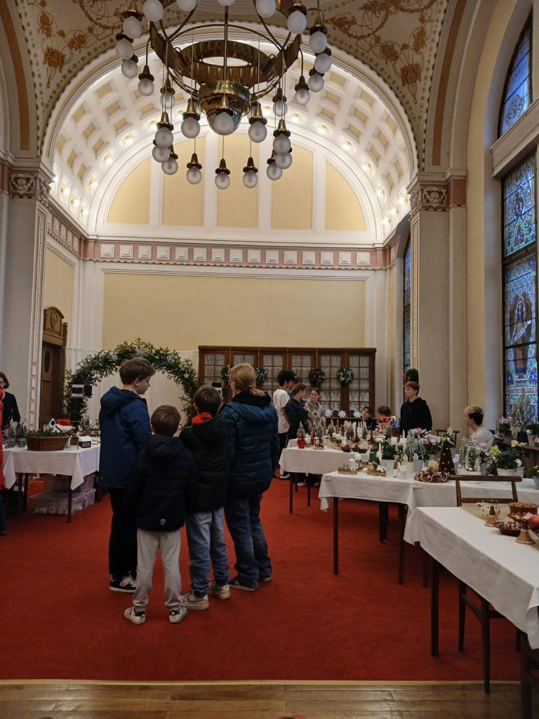 S dětmi jsme navštívili výstavu vánočních výrobků v krásných prostorách kaple nedaleké školy pro sluchově postižené.