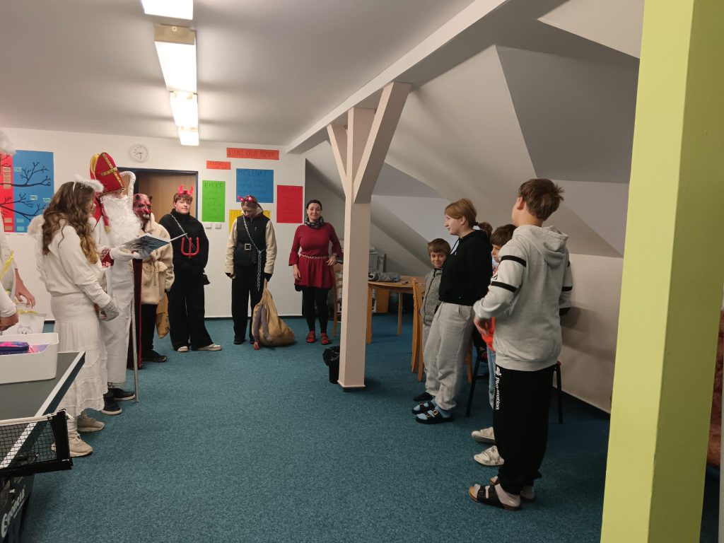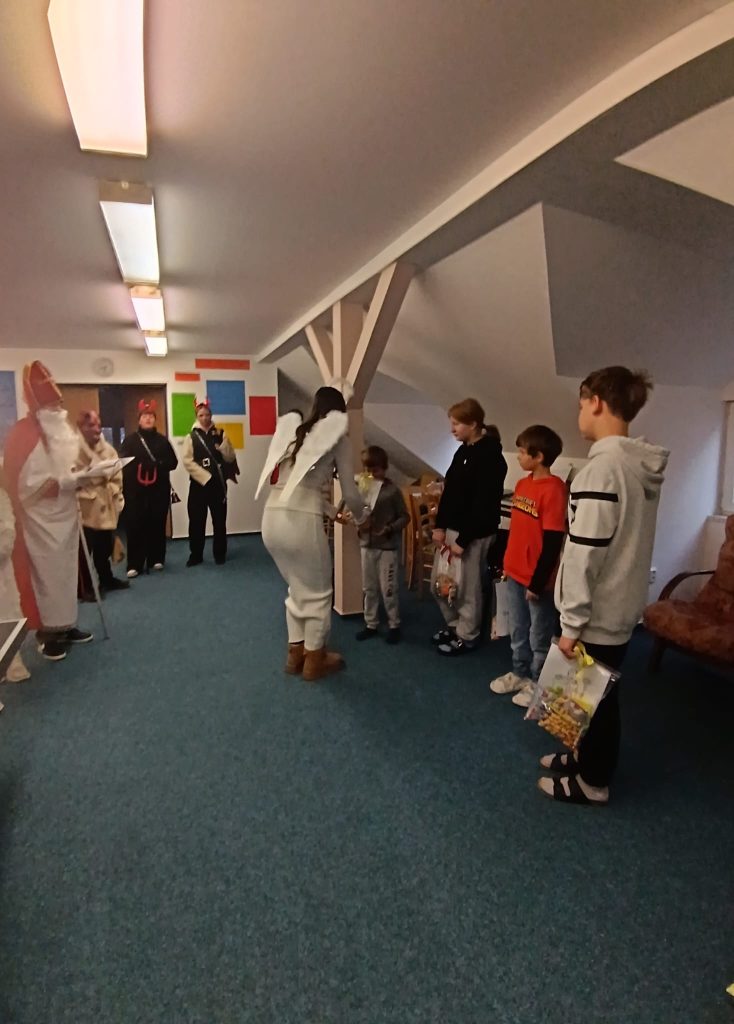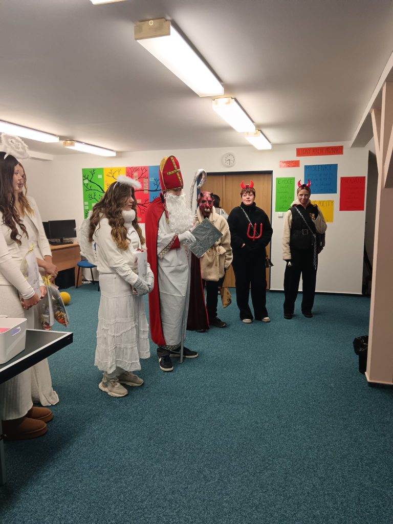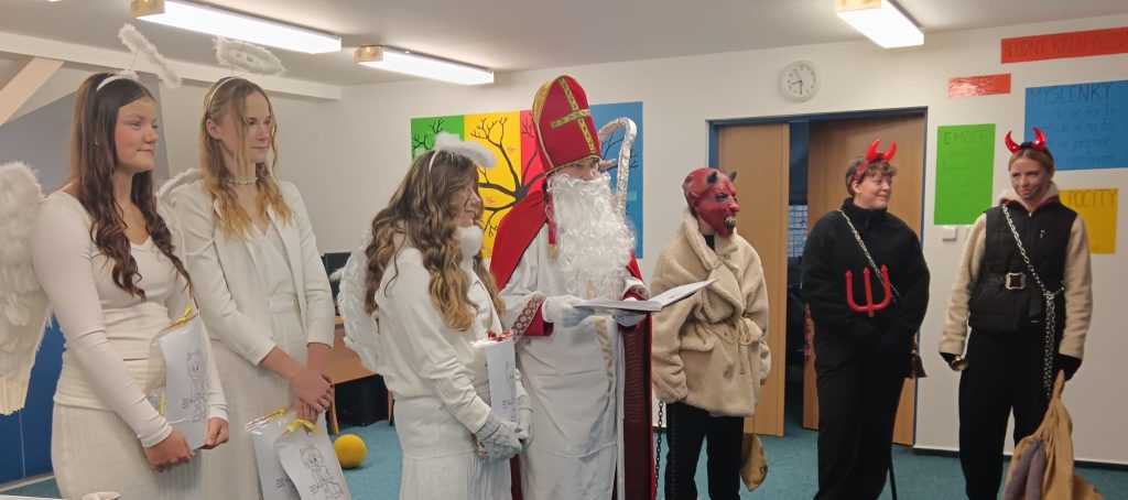 Součástí adventního programu byla také návštěva Mikuláše s jeho početnou družinou. Mikuláš byl dobře informován nejen o drobných prohřešcích, ale i o všech kladných stránkách a snaze našich dětí. Ty mu na oplátku zazpívaly písničku a s mírnou dávkou napětí si vyslechly jeho hodnocení. Odměnou jim byly balíčky, které jim udělaly velkou radost.
