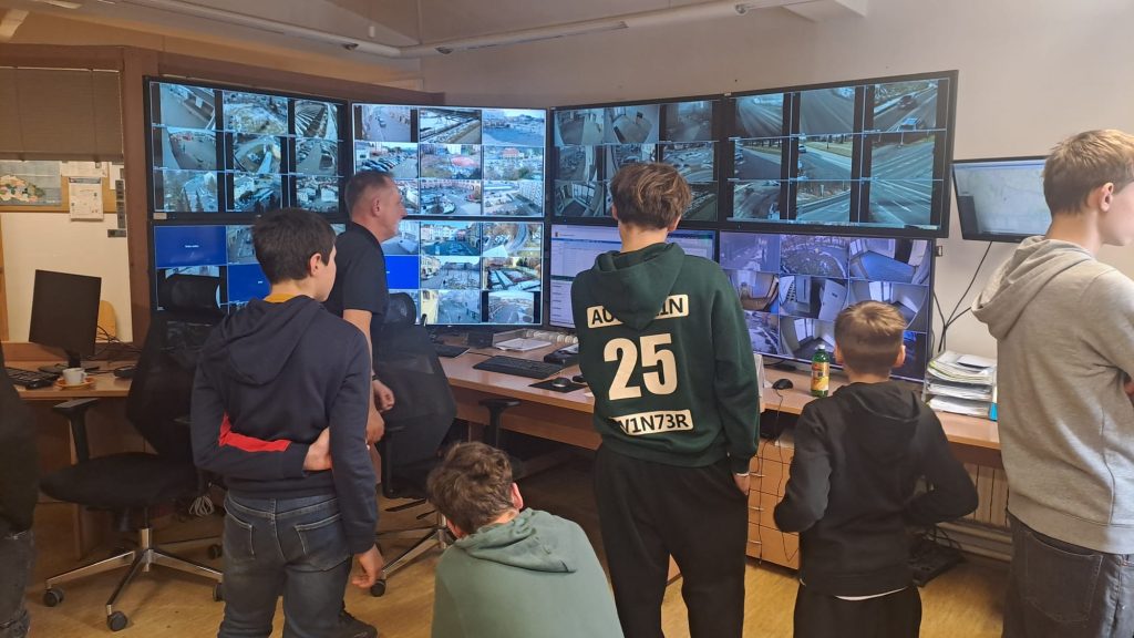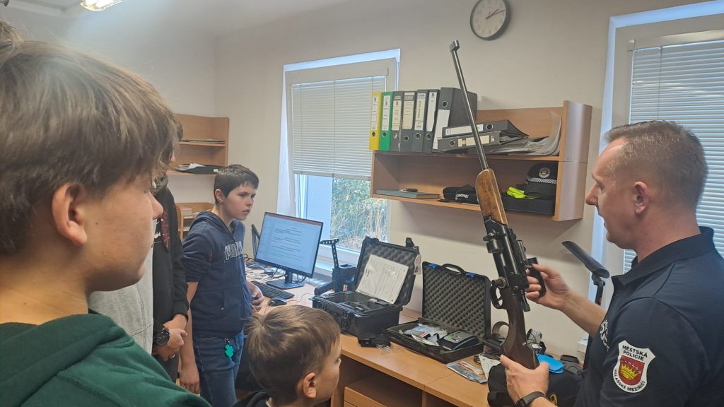 Klienti dále navštívili služebnu městské policie, kde je jeden ze strážníků poutavě seznámil s náplní své práce. Součástí prohlídky byla i ukázka služebního vybavení, které si chlapci mohli zblízka prohlédnout a některé části si i sami vyzkoušet. Exkurze byla pro všechny zúčastněné zajímavým a názorným vhledem do práce bezpečnostních složek.